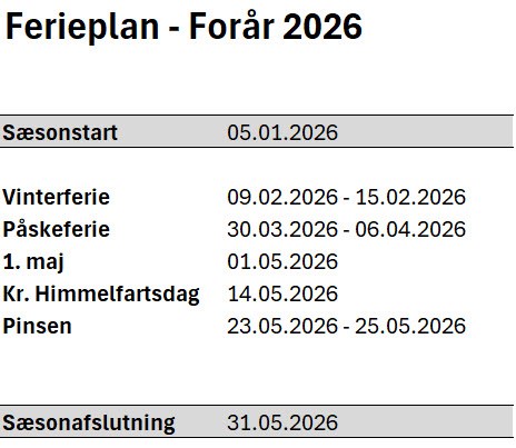 Der tages forbehold for, at svømmehallen kan lukke på andre dage end nedenstående. Dette kan skyldes tekniske eller andre uforudsete problemer. Svømmeafdelingen er uden indflydelse på dette.